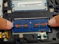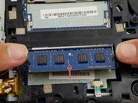 Push the two clips outwards at the same time with your fingers. The RAM will gently pop upwards.