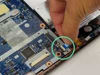 Remove the green ribbon on the backside of the laptop by pulling on it lightly as shown.