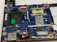 Now completely pull apart the motherboard from the underside of the laptop by pulling on the location of the arrows.