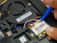 Use the blue plastic opening tool and carefully remove the connectors from the Wi-Fi card.