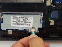 Carefully remove the piece of tape to allow for more room to remove the Wi-Fi card.