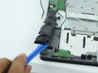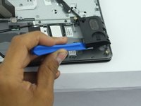 Remove the speakers located on both left and right bottom corners of the Chromebook with a plastic opening tool.