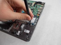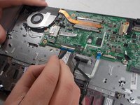 Pull on the blue tab of the ribbon cable to remove the ribbon cable.