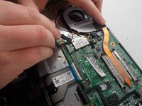 Place the back of the spudger under the white coaxial antenna wire that connects the wireless card to the motherboard.
