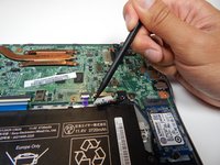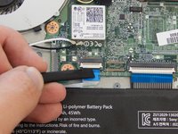 Remove the 3.75 mm screw near the top right corner of the battery with a Phillips #0 screwdriver.