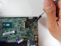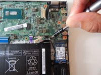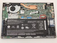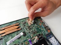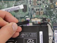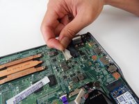 Peel back the tape covering the white connector at the top-right of the motherboard.