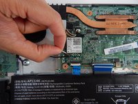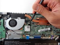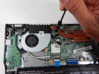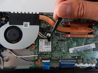Lift the heatsink fan and rotate it away from the mother board to set down outside the laptop.