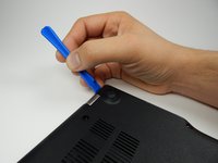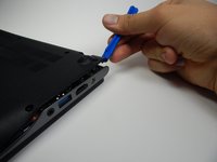 Insert the plastic opening tool into the slit near the hinges and pry upwards to lift the back panel.