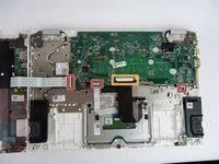 Unlock the latches on the three white ribbon cables, then pull to detach them from the motherboard.