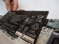 Carefully lift the battery from one side, and then lift it out of the laptop.