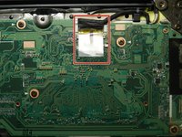 Remove the two 4.5 mm screws from the motherboard using a Phillips #0 screwdriver.