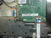 Lift the respective white and black tabs and slide the ribbon cables out of their connectors.
