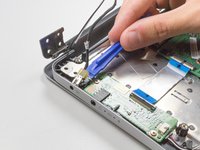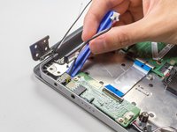 Remove the power port entirely from the computer by pulling up on the plastic portion of the port with a plastic opening tool.