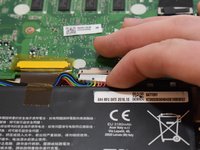 Carefully pull out the ribbon cable attached to the motherboard that runs wires to the battery.