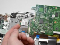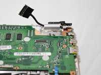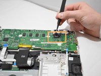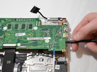 Lift the motherboard up from the laptop using a spudger tool.