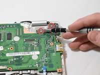 Remove two 2.2mm JIS #1 screws from the middle of the motherboard.