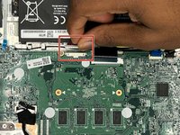 Use the tip of a spudger or your fingernail to flip up the small locking flap. Then, you can safely pull the cable out to disconnect the battery from the motherboard.