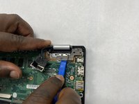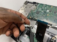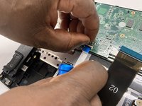 Disconnect the daughterboard ribbon by flipping up the white tab and pulling it out from the motherboard.