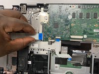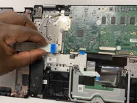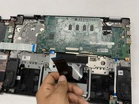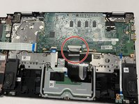 Disconnect the touchpad ribbon by lifting up the tab and pulling it out.