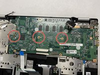 Use a Phillips #1 screwdriver to remove the three 3 mm screws that secure the motherboard.