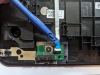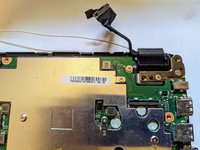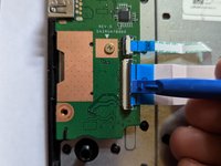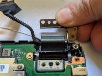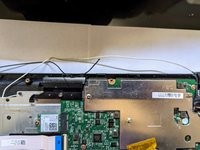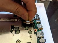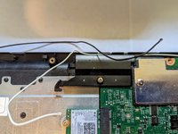 Pull the black ribbon attached to the speakers out of the motherboard.