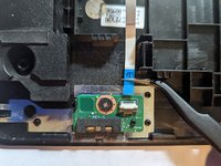 Pull the touchpad toward the motherboard as you continue to lift it, sliding it out from under the retaining fingers at the bottom.