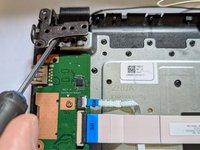 Using the Phillips #1 screwdriver, remove the three 3.2 mm screws holding the touchpad to the laptop.