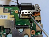 Using the same Phillips #1 screwdriver, remove five 3 mm screws securing the metal plate to the motherboard.