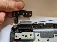 Remove the two screws from the left hinge.