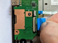 Flip up the latch on the cable from the I/O board to the motherboard.