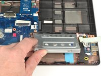 Locate the hard drive and its carriage at the lower right corner of the laptop.