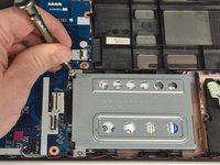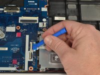 Carefully lift up on the right edge of the motherboard near the hard drive connector.