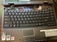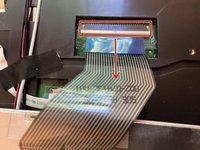 Flip the keyboard around, so you have access to the ribbon cable on the back of the keyboard