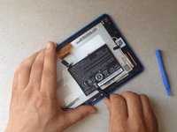 The battery is glued to the LCD display metal shield with a double sided adhesive tape.