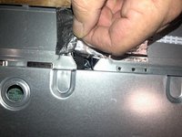 Careful with the one on the bottom. The button bar flex cable in stuck to the panel with this tape.