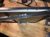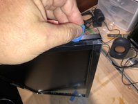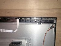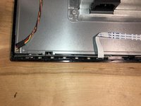 Lay the monitor so you can access the cables. Here we see the button bar which is still attached to the bezel.