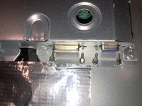 Here are the 4 screws that have to be removed. 2 for the VGA port and 2 for the DVI port