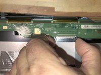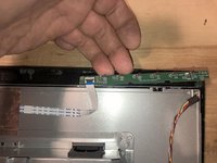 Next, gently lift the button bar cable from the back of the display. Keep your fingers short to where you remove it so it does not tear