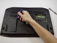Remove the screw from the hard drive cover on the left side of the laptop with a Phillips #0 screwdriver.