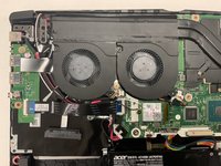 This guide will walk you through the process of replacing a dying or dead fan in an Acer Nitro 5 AN515-53-55G9. If your computer produces excessive heat or noise during compute intensive tasks like gaming, it’s likely indicative of a problem with the computer’s fan. It may also help to clean your existing fan by removing it as shown in this guide and blowing out any dust buildup. If replacing the fan does not solve your issues, you may be able to further address any heat management issues by reapplying the thermal paste in your heatsink.