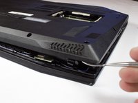 Use the Phillips #0 screwdriver to remove the 9mm screw in the bottom left corner of the RAM tray covering.