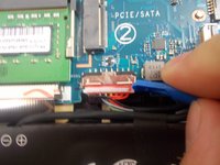 Remove the two screws from the battery with a Phillips #1 screwdriver.