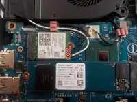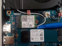 Use an iFixit opening tool to lift the two Wi-Fi antenna cables up and away from the Wi-Fi card.