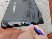 Slide an iFixit opening tool into the front lip of the laptop and slowly move your way around the chassis.