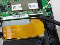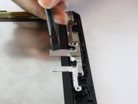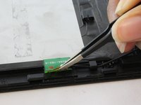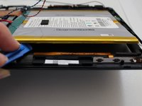 Peel the silver tape on the side of the tablet using the nylon spudger. Do not completely remove the tape.