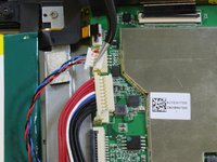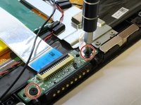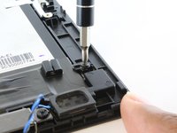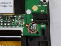 Remove the two 3.5 mm Phillips #0 screws on either side the keyboard connection.