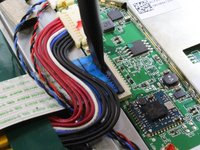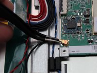 Disconnect the black cable from the small green connector using the precision tweezers.