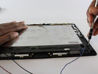 Starting from a corner of the tablet, use the plastic opening tool to create a gap between the screen and the back covering.
