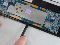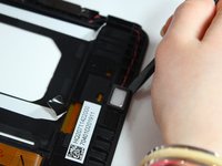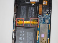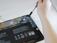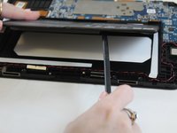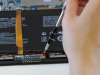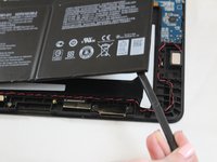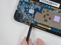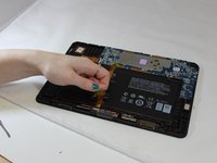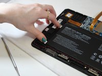 Use the spudger to separate the battery from glue that holds the battery to the screen. Carefully pry the battery from the tablet.