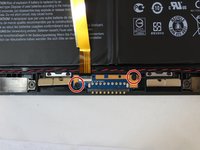 Using the Phillips #00 screwdriver, unscrew the two 2mm screws at the top right of the battery.